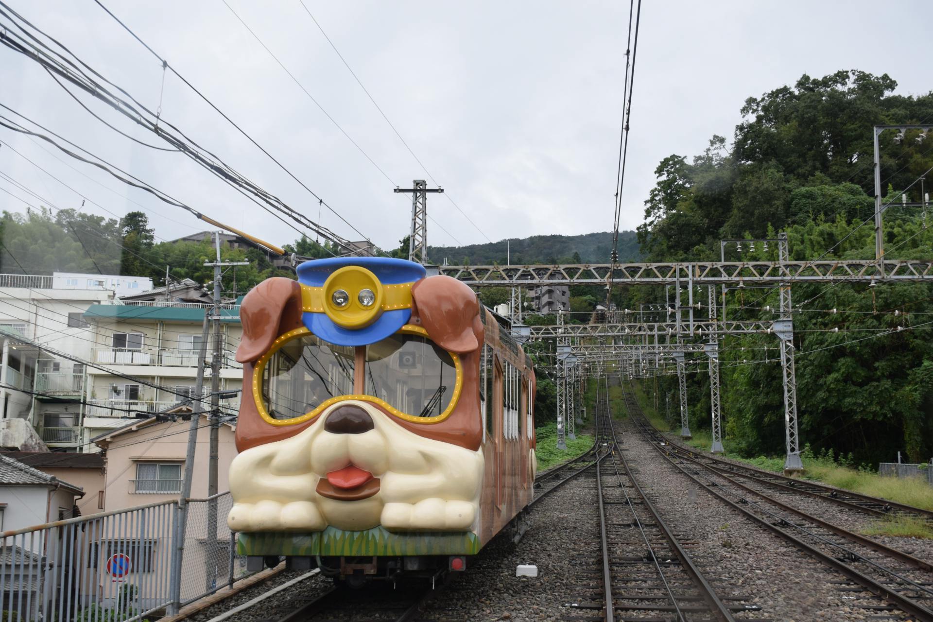 ケーキ型の「スイート」号と、今回見ることのできなかった「ドレミ」号は宝山寺駅から生駒山上駅を走ります。