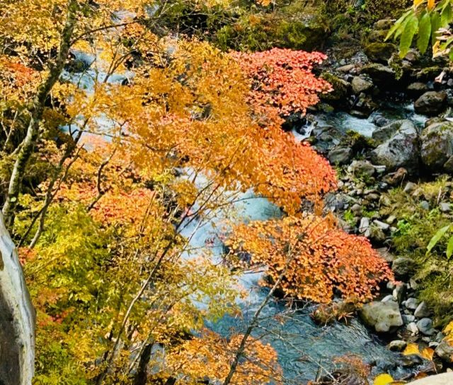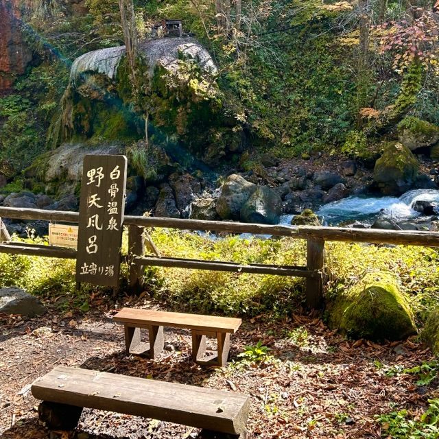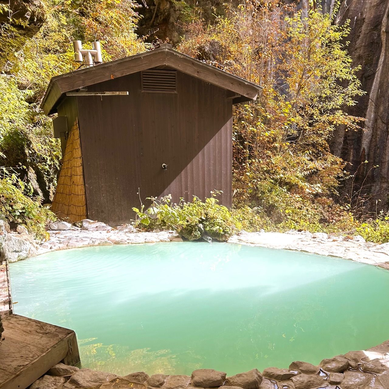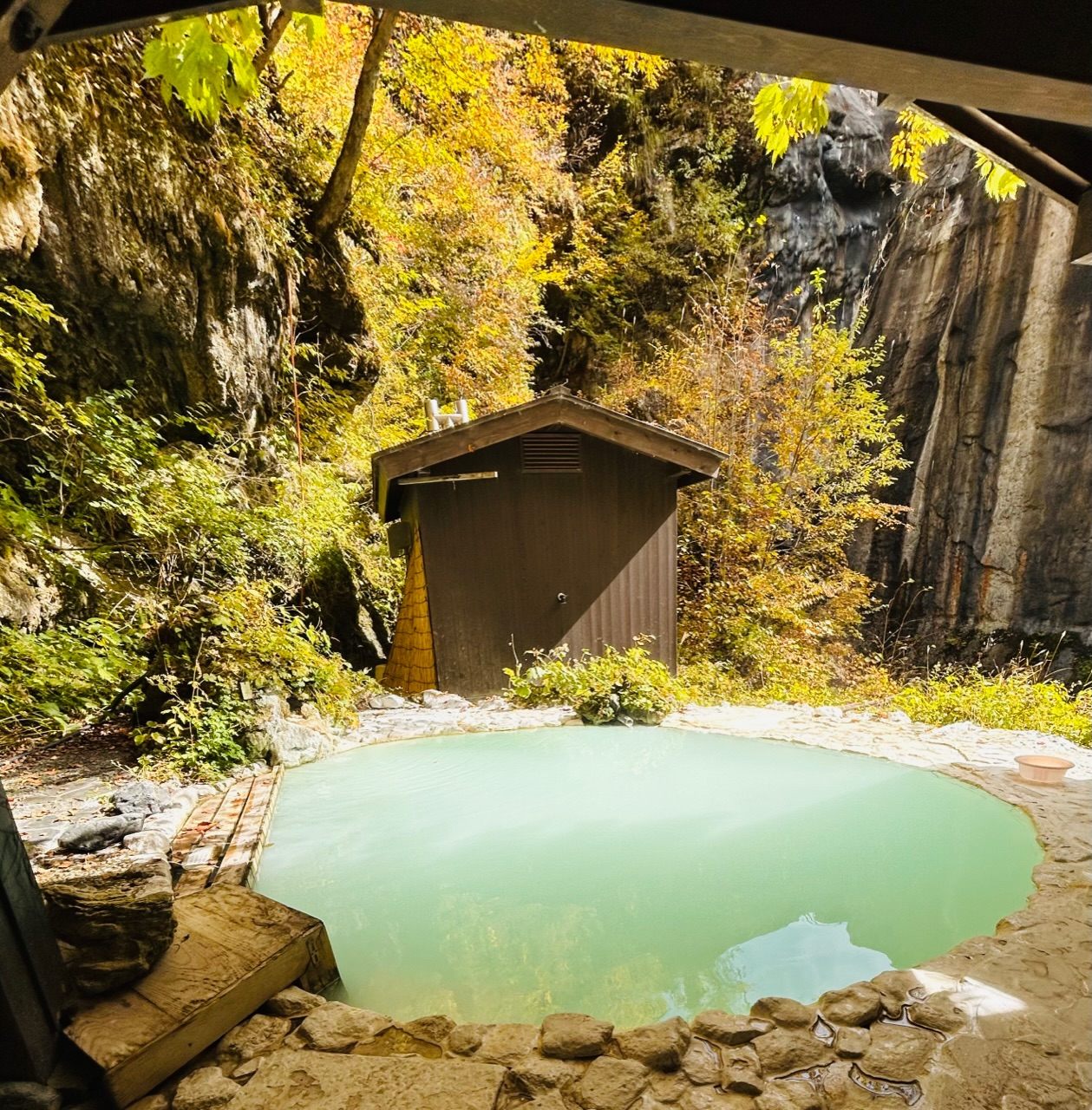 幸いにも、秋晴れの紅葉の中この野天風呂に入れ気持ちのいい時を過ごせました。