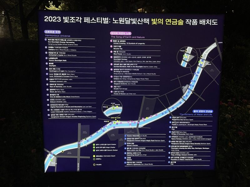 地下鉄4号線 上渓駅の近くを流れる堂峴川一帯(2.5km)が会場で、水と生命の錬金術、大地と自然の歌、調和した宇宙の3テーマ、42作品が展示されています。作品の一部を紹介します。