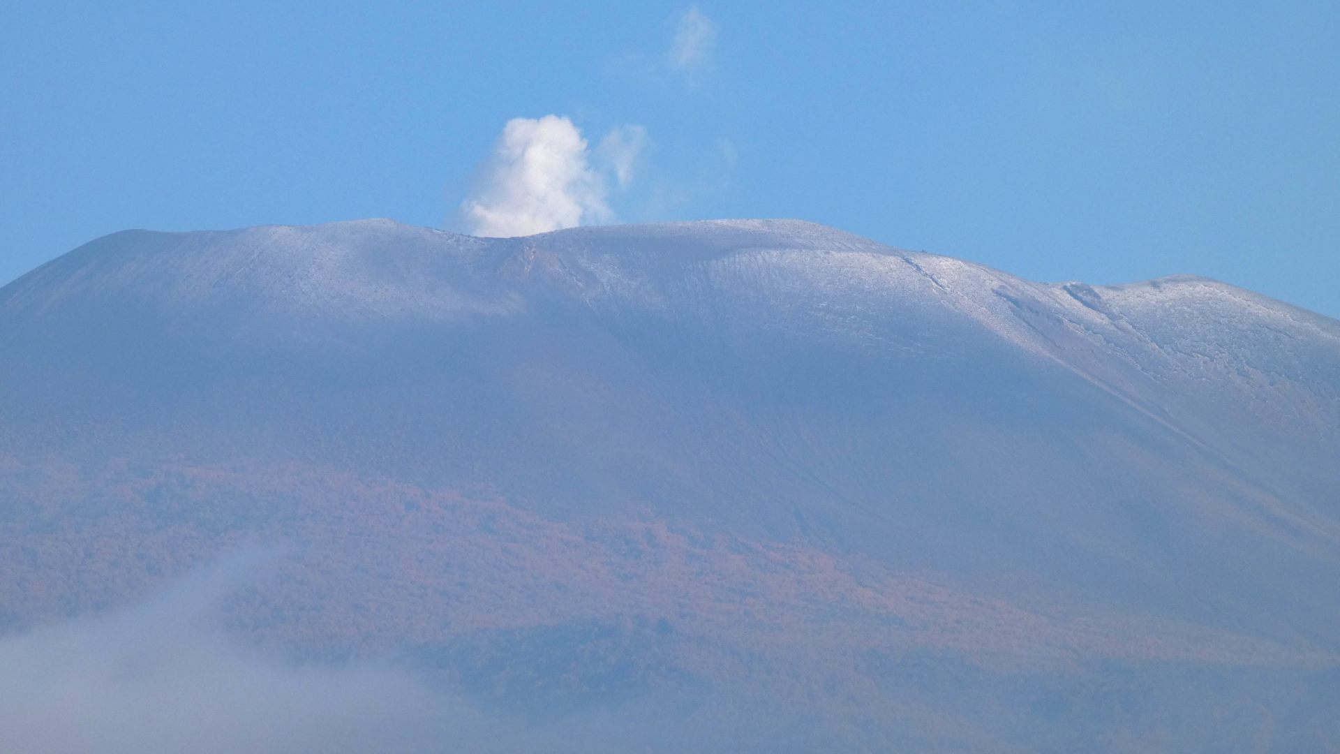 煙も少し出ていますが、7時40分頃の浅間山です。浅間山に3回雪が積もると、麓にも雪が降ると言われています。軽井沢の初雪の平年値は11月17日だそうです。冬がそこまで来ていますね。紅葉のきれいな時期ですが、暖かい格好でお越しくださいね。