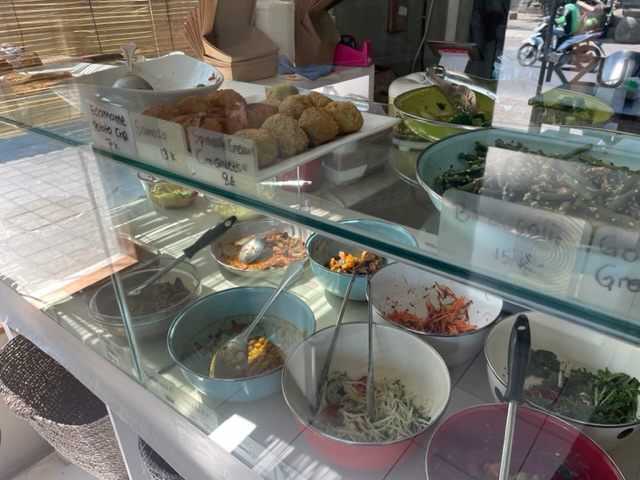 お惣菜は、インドネシアンスタイルでショーケースに陳列されているので、指差しでオーダーすればOK!