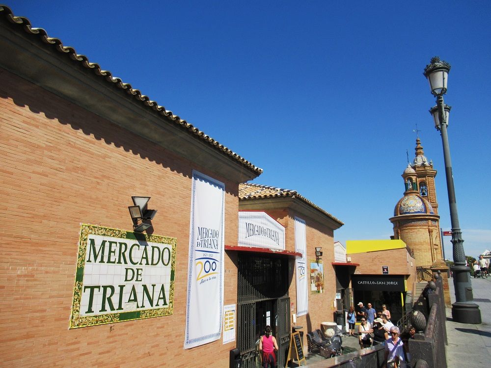 人気のトリアナ地区でランチしようと歩きましたが、ちょうどシエスタの時間で、バルはどこも休憩中。「メルカード・デ・トリアナ(トリアナ市場)」まで歩き、ようやくお昼にありつけました。