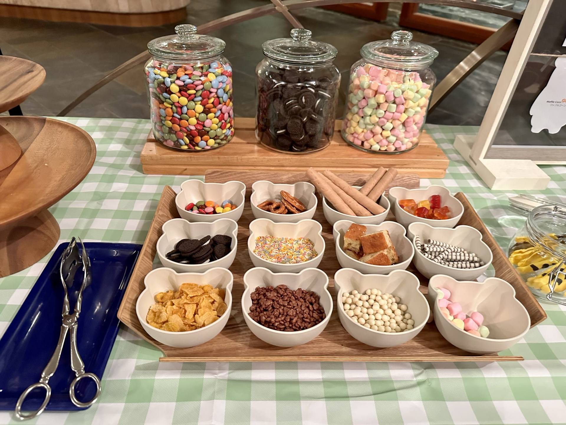 トッピングも楽しめるアイスクリーム。カップやコーンに入れて、世界に一つだけの、マイアイスをお楽しみ下さい。