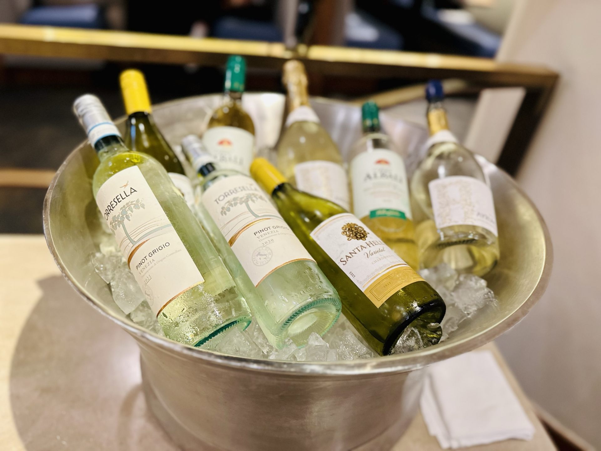 白ワイン3種、赤ワイン、スパークリングワイン各1種、ビール、ソフトドリンクがフリーフローで楽しめます。