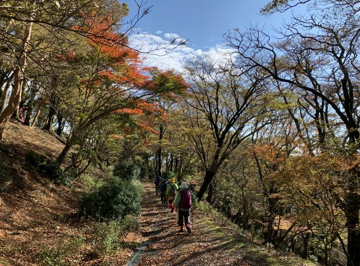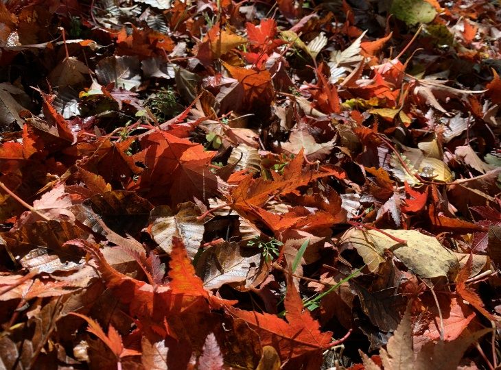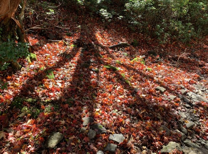 前日(11/6の夜間)に雨と風で天候が荒れたため、足元にカエデの葉がたくさん落ちています。