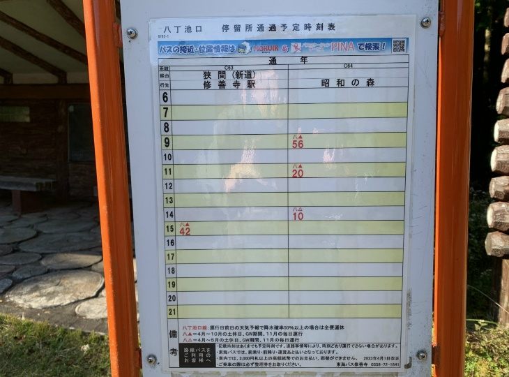 見ての通り、路線バスの本数はこれだけなので、乗り遅れたら徒歩で下るしかありません。