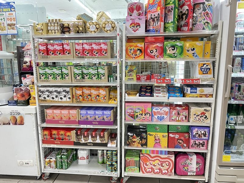 写真はコンビニGS25前のペペロの陳列です。今年はパワーパフガールズのキャラクターがパッケージになっていました。