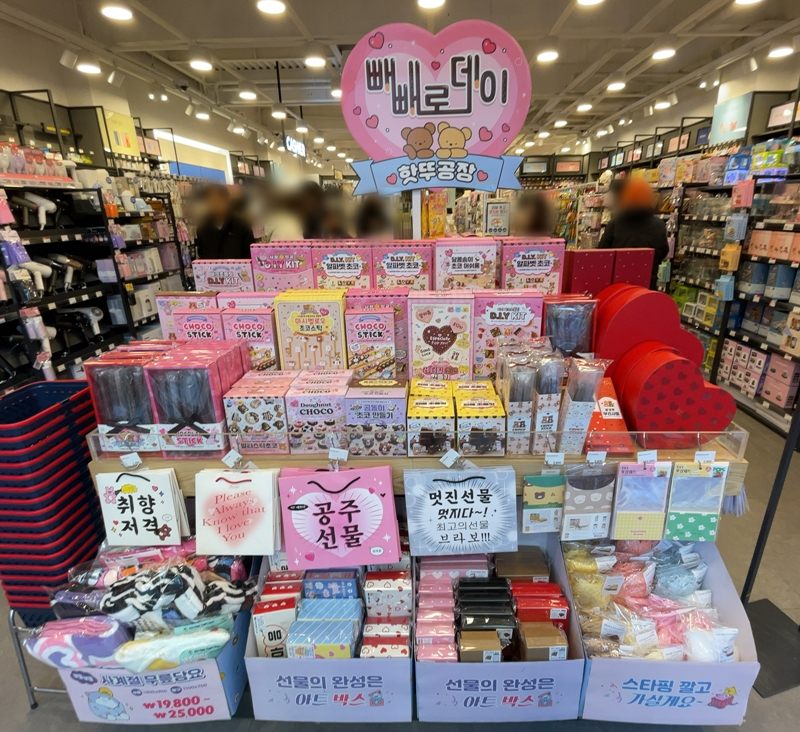 韓国ダイソーでは様々なペペロがあり、ラッピンググッズも多く売られていました。