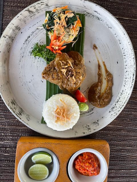 こちらのコース料理は、インドネシア料理という括りです。バリ島以外の島々はイスラム教が大半を占めている為、牛料理が日常的にバリ島でも食べる事が出来ます。