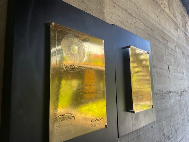 優れた建築に授与される受賞プレートが、飾ってあります。