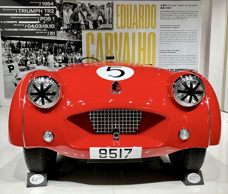 この様な経緯で第一回マカオグランプリが1954年10月30日に開催され、香港在住のポルトガル人のエドアルド・デ・カルバルホがステアリングを握るトライアンフTR2が優勝しました。この最初のマカオグランプリは4時間耐久レースとして開催され、優勝車であるトライアンフTR2は現在でもマカオグランプリ博物館に展示されております。