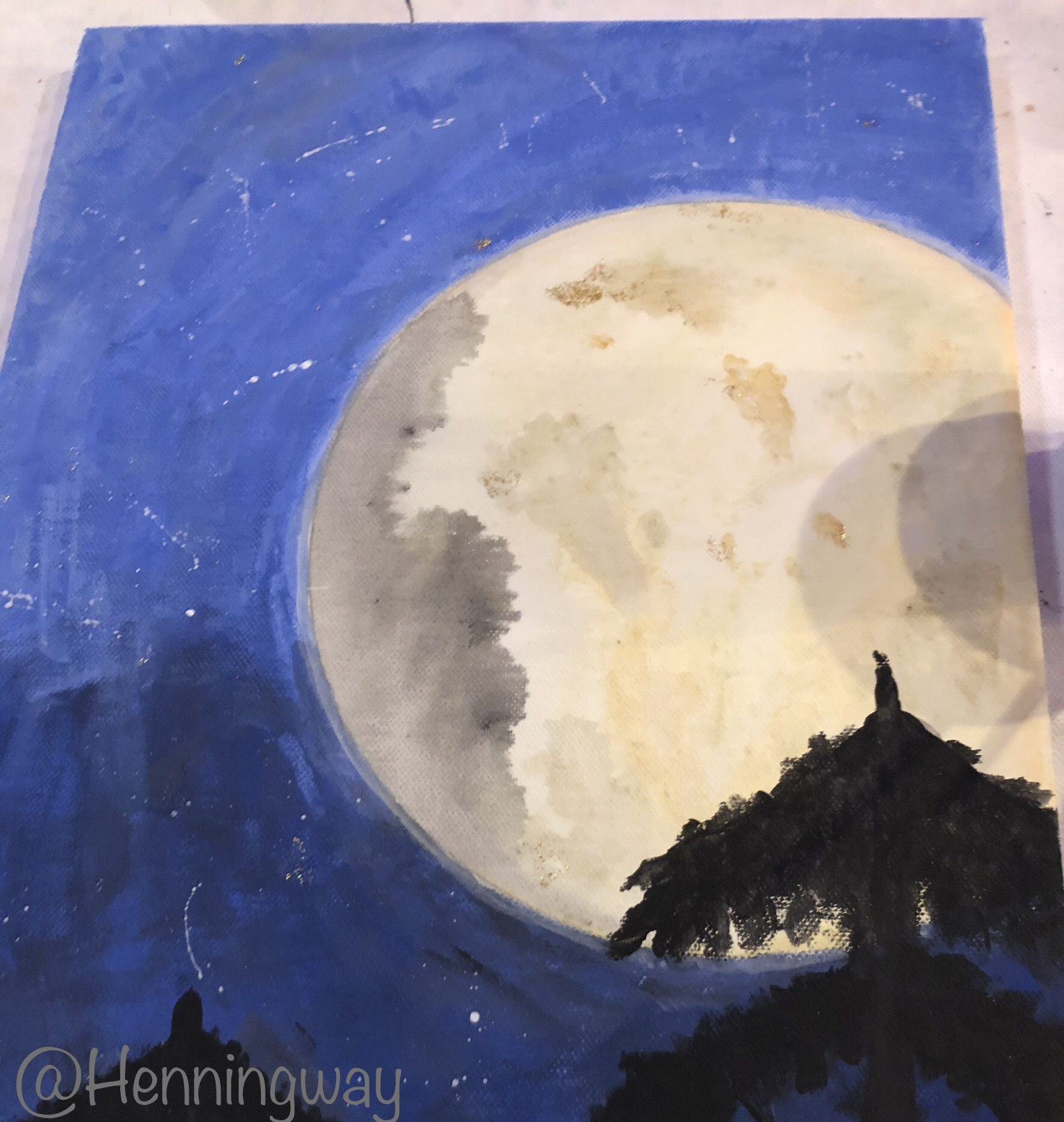 学校でも習ったことのなかったパレットナイフを用いての作画、さらに抽象画なんて描いたこともなかった私の初作品はまぁまぁの仕上がりでしたが、新しい技法を使って描いた自分だけの絵はいい経験と記念の作品になりました。