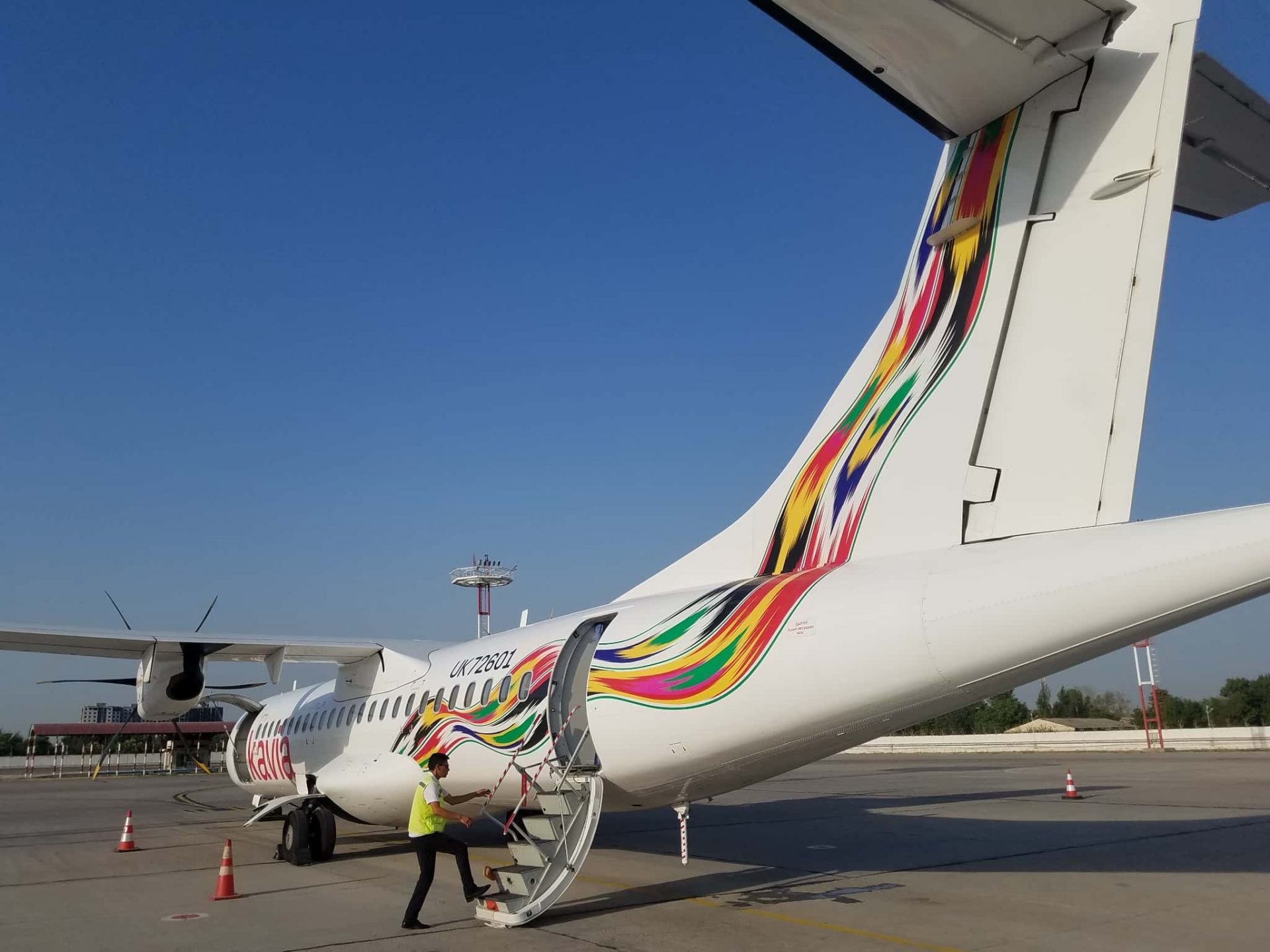 路線は現状国内線のみですが、将来カザフスタンなどにも就航する可能性があるとのこと。すべて近距離路線のため機材はATR72-600というプロペラ機しかなく、ビジネスクラスもありません。