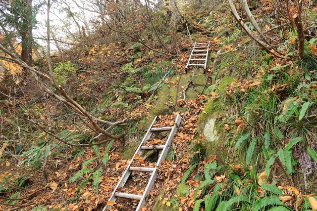 水場との分岐から一気に傾斜がきつくなり、ハシゴやロープが目立つようになります。