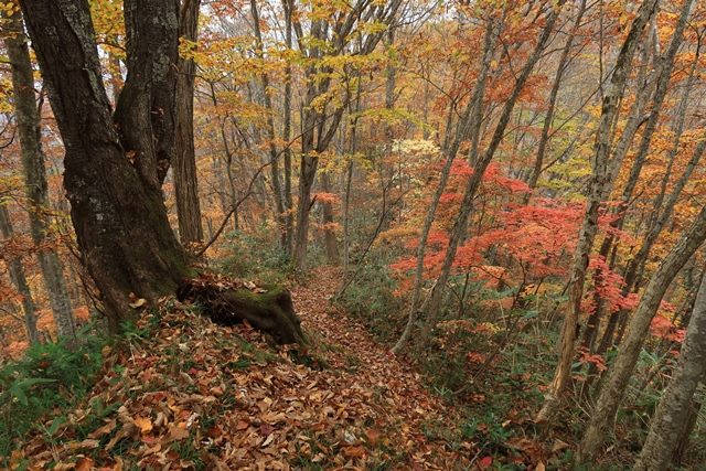 ブナやカエデなどを中心とした紅葉に囲まれます。
