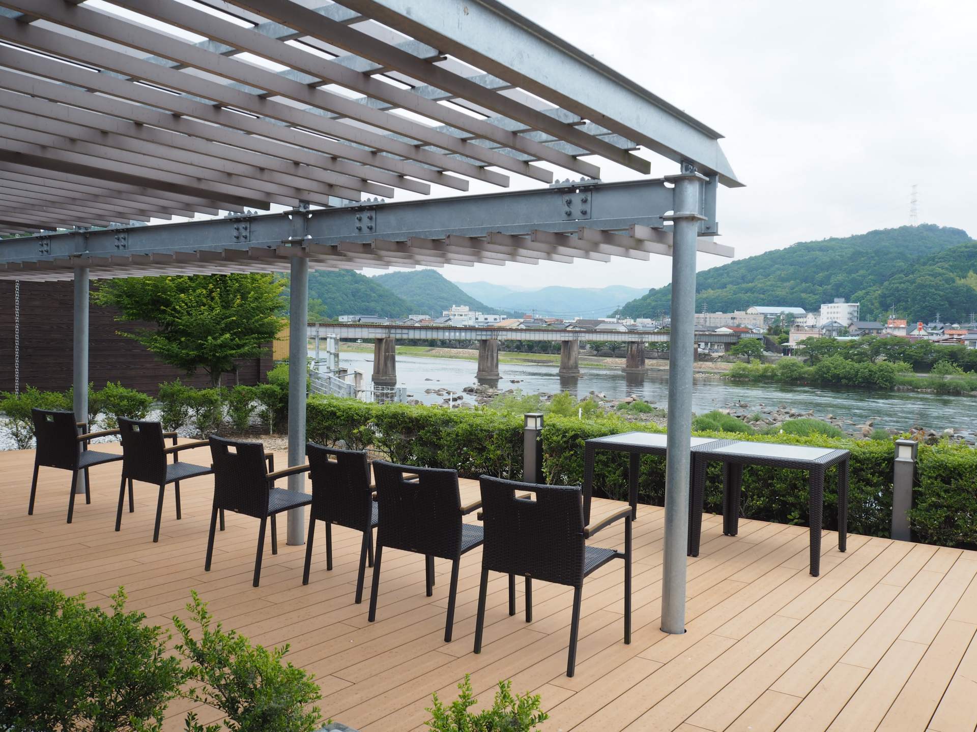 川面に向けて椅子が並べられているので、お風呂上りにドリンク片手に川風にあたり涼むこともできますよ。