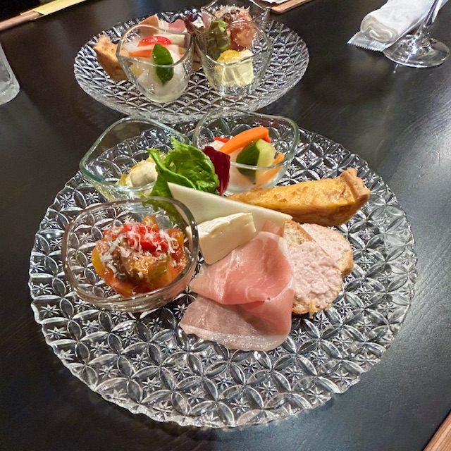 ガラスのお皿にきれいに盛り付けられて、見ているだけで美味しいと感じられます。