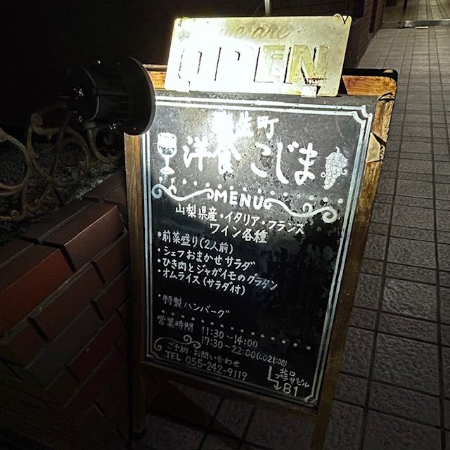 今日は,良く旅に行く山梨県のお店を紹介します。山梨は、個人的にお気に入りのため何年も前から年,複数回行っています。そして大体、甲府周辺に宿をとり色んなお店を訪問してきました。今回は、甲府駅北口のビルの地下にある隠れ家的な洋食屋、弥生町洋食こじまに行ってきました。