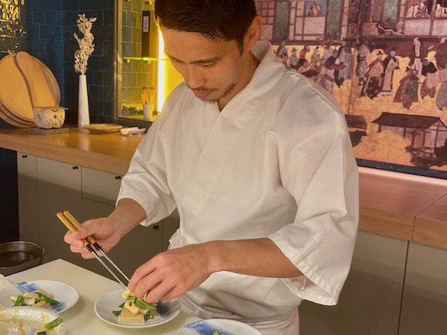 蒼はカウンター8席のみの小さなお店です。メニューは基本、17品€ 98,00の「斉藤」と12品€ 68,00の「蒼」という2種類のお任せのみ。アラカルトで追加も可能だそうです。