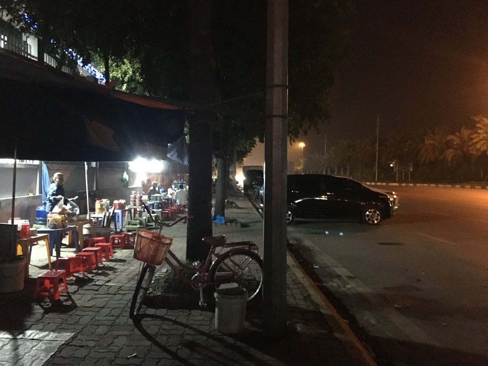 ホテルの横の路上では早朝にも関わらずプラスチックのイスとテーブルがずらりと並べられ食事をしている人がおり、大きな荷物を背負い、まだ眠そうな子供の手を引いて歩く私たちを少し不思議そうに見ていました。