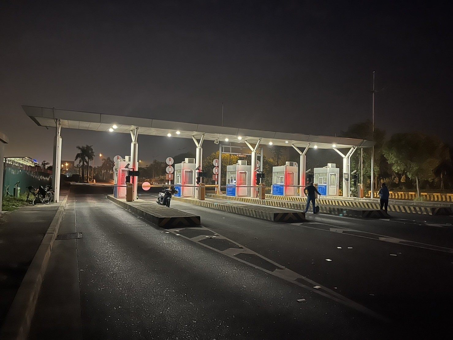 ホテル前の大通りを5分程進むと、左に空港のゲートが見えます。まだ日も登っていませんがタクシーや乗用車がゲートを通過していきます。係員の人がいたので止められたら嫌だなと思ったのですが、特に何も言われずに徒歩でゲートを通過。通過後は、念願の歩道がありました!