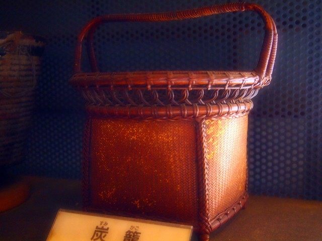 大庄屋らしく農機具類が多く、生活の道具も火鉢や柱時計などが並んでいました。その中に「炭籠」があり、丁寧に竹で編まれ、とても目を挽きました。「用の美」というのでしょうか、相当の年月が経っているにも関わらず、艶やかで美しいと感じました。この炭篭だけでなく、ほとんどの道具がよく手入れされ、今も現役で使えそうな感じでした。