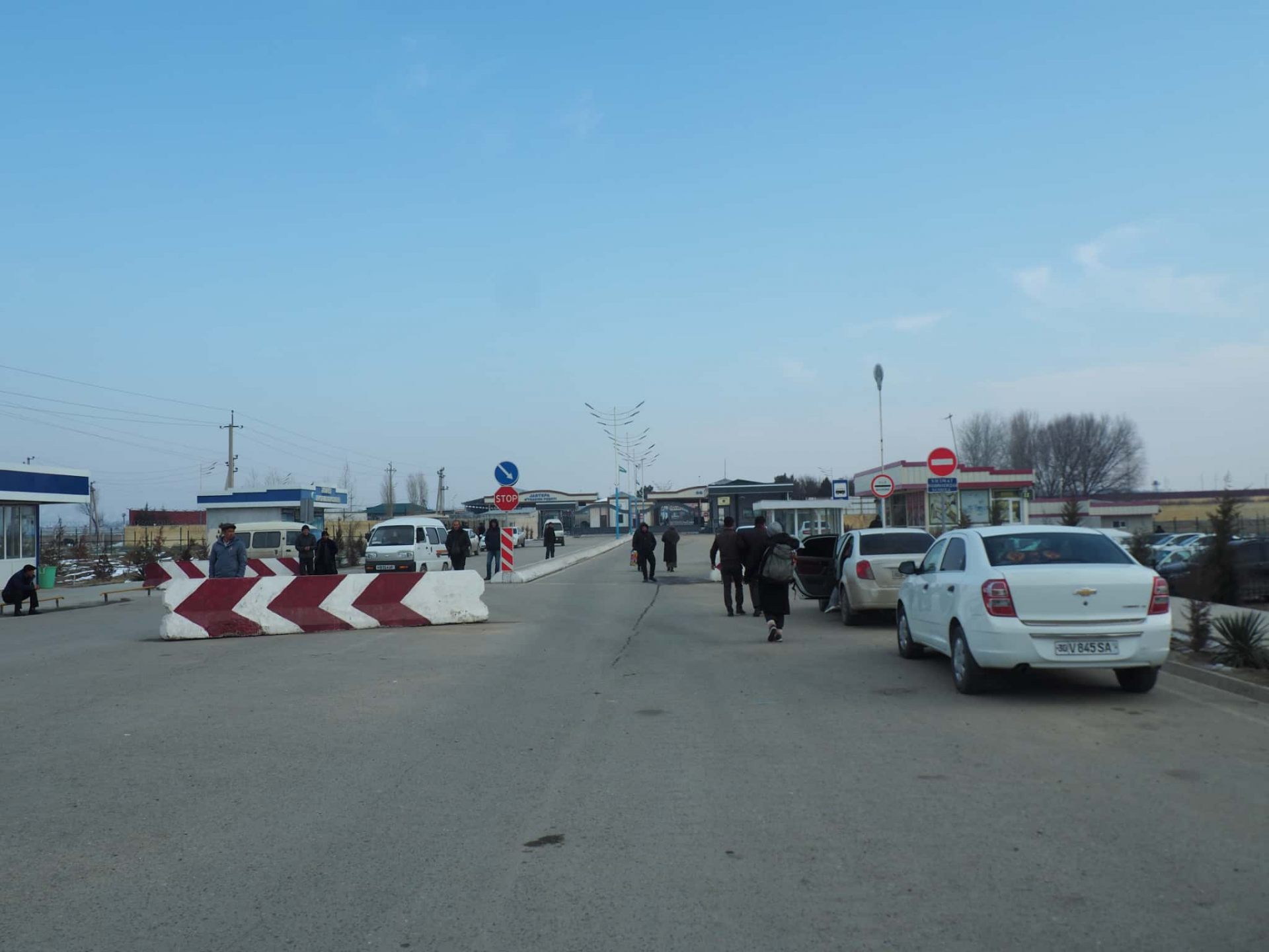 タジキスタン国境に向かいたければ、まず行くべきはサマルカンド市内南東部にあるターミナル、カフタルホナ・ターミナル Kaftarxona terminal。ターミナルといってもバスがずらりと停まっているわけではなく、乗り合いタクシーやダマス(乗り合いバン)の運転手が乗客を呼び込もうとひたすら客引きをしてくる、殺伐とした場所です。ここでタジキスタンやグラニッツァ(ロシア語で「国境」の意味)、タモージニャ(同じくロシア語で「イミグレーション」の意味)、ジャルテパ(国境の地名)などと叫んでくる運転手を見つけ、車に乗り込みます。乗り合いタクシーなら2~3万スム、ダマスならもう少し安いはず。