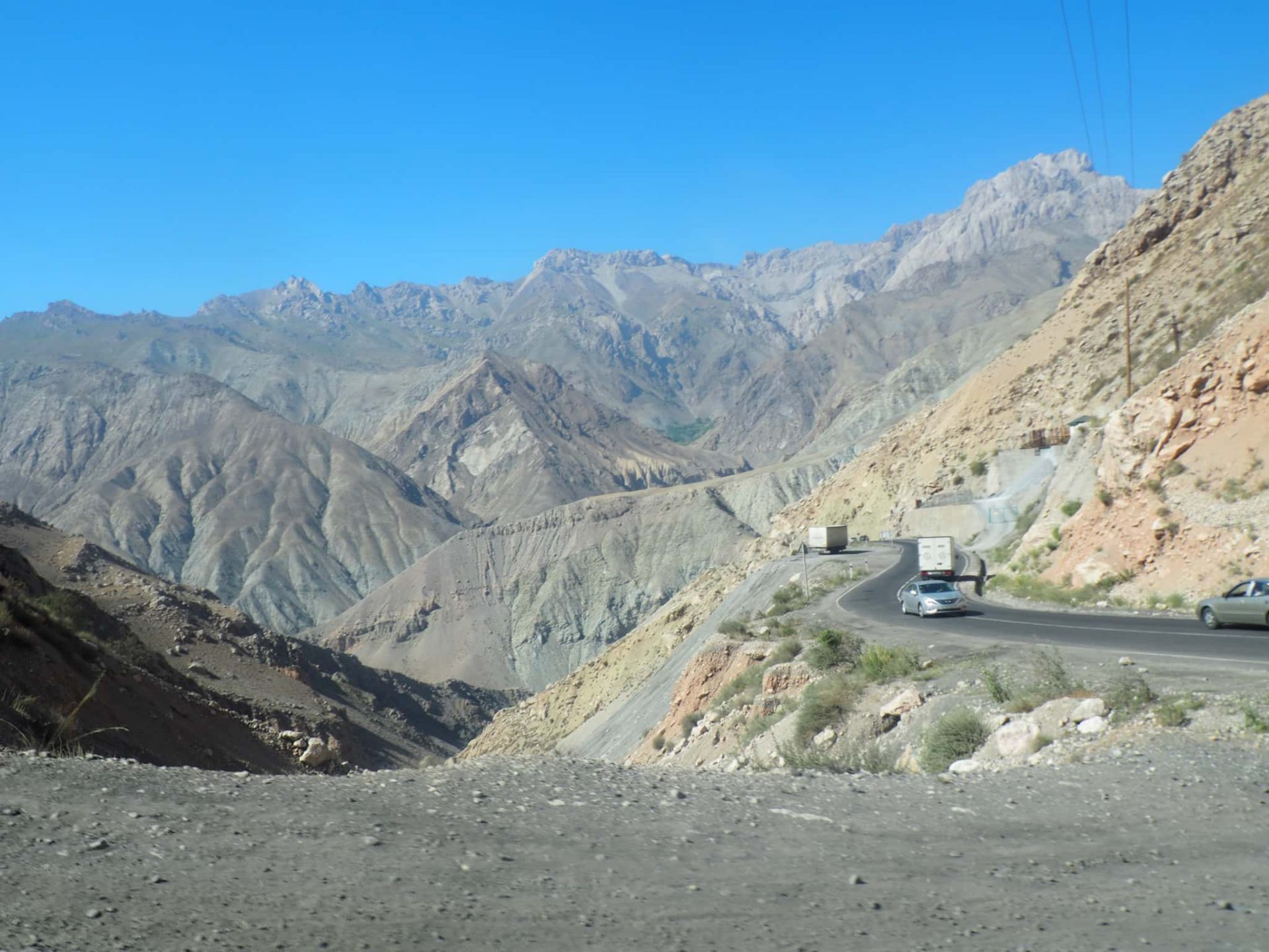 Автовокзалと表記あり)。ここから乗り合いタクシーで4~5時間ほど走ればドゥシャンベに到着します。私が移動した時は料金100ソモニで、出発まで2時間半も待ったのでなるべく朝早くに行った方がいいでしょう。この移動中は山の国タジキスタンの神髄と呼べるようなすばらしい眺めが楽しめるので、窓側席を死守しましょう。