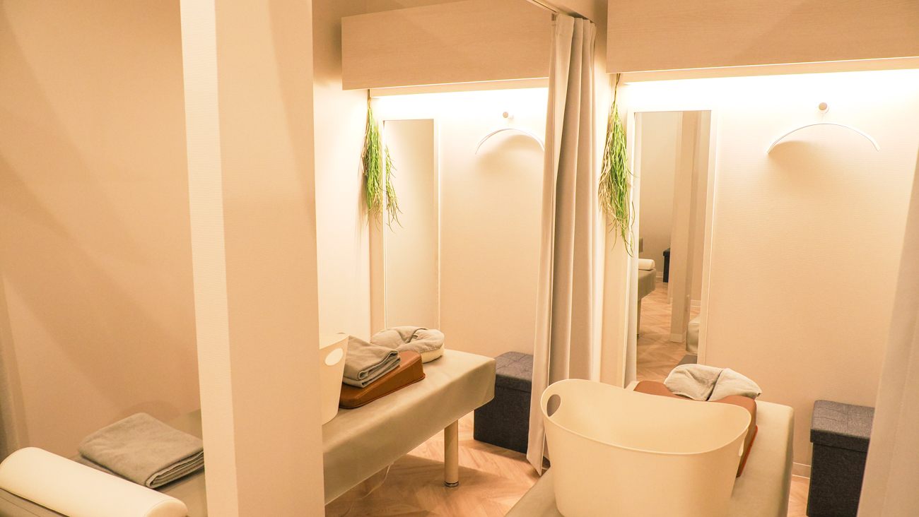 施術はカーテンで仕切られるスペースのほか、完全個室もあり、スペースが空いていれば、予約なしでも対応してもらえます(WEB・電話予約可)。