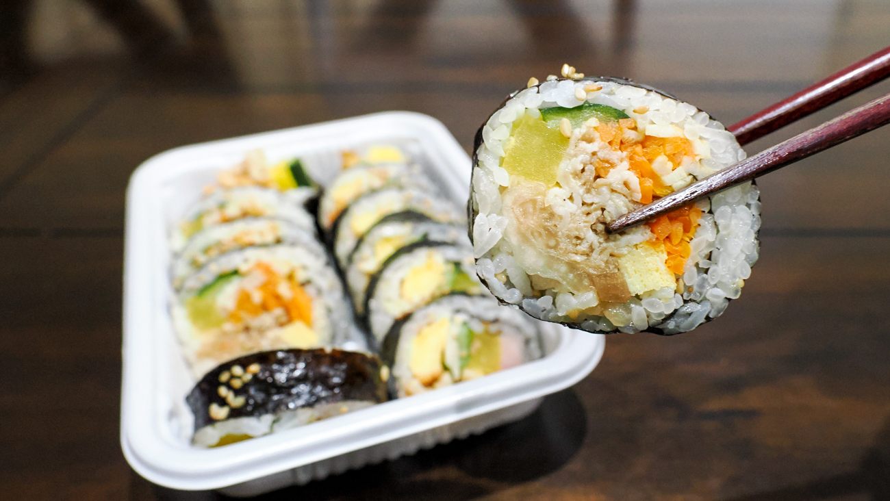 そして韓国料理の定番、キンパもあり、オリジナルキンパ(600円)と豚キムチキンパ(700円)の2種類のほか、「ハーフ&ハーフキンパ」(写真/700円)を販売。