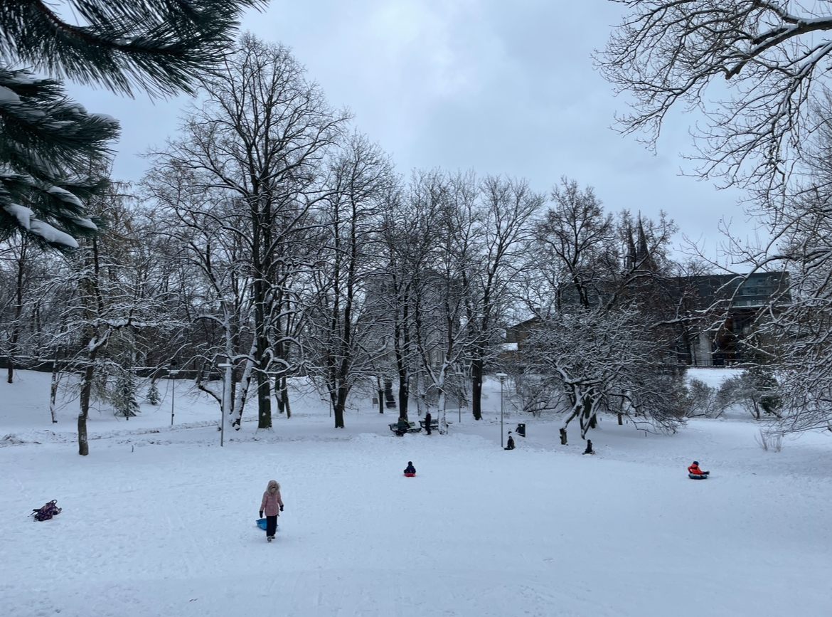 ちなみにエストニアは日本と比べるとのぺーっとしておりまして、坂は滅多にありません。坂のあるところと言えば4ヶ所くらいしか知らないのでとりあえず家から一番近い坂に行ってみたら子どもたちがちょこっといました。おいおい、ちょこっとしかそり遊びしてないじゃん〜と思いながらよく見るとそりを使わずに遊んでいるではありませんか!