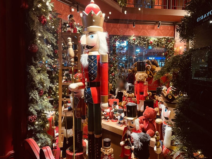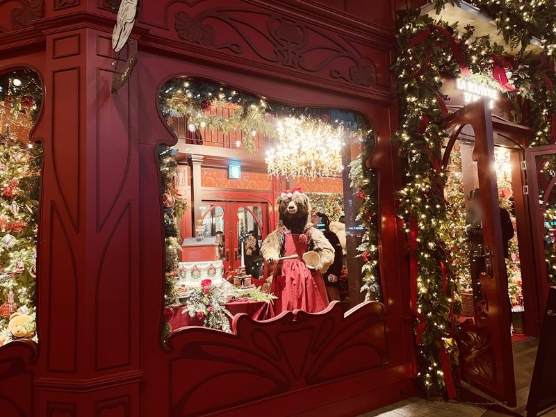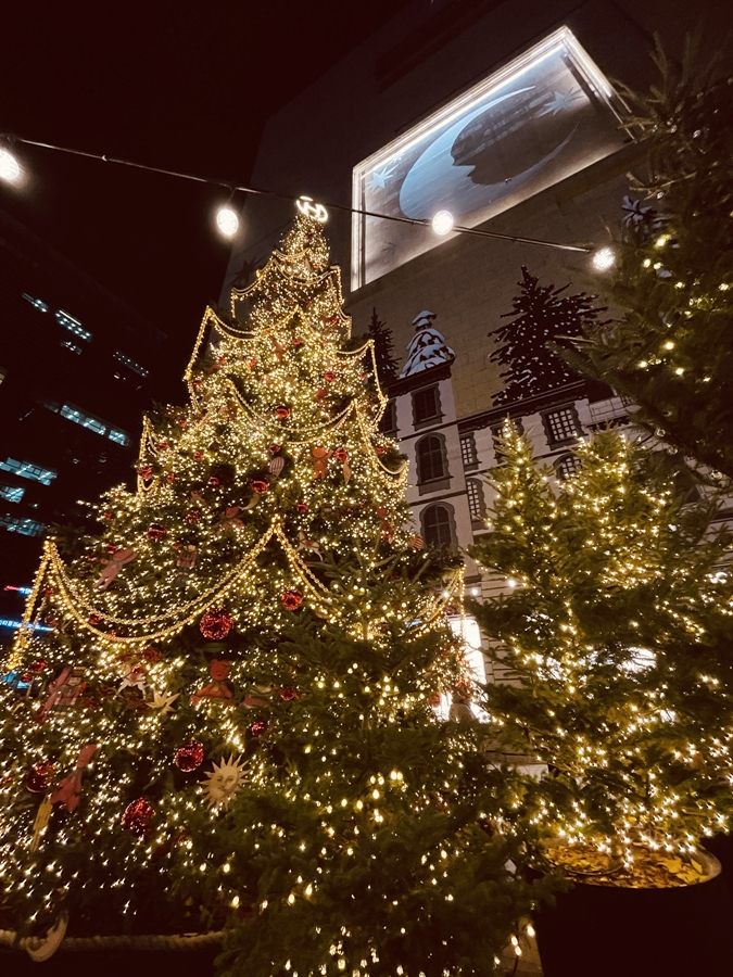 外からでも可愛らしい人形やツリーを眺められ、クリスマスの雰囲気を味わうことができます。夜に行くと、ライトアップがきれいで、華やかでした。こちらは12月31日までです。