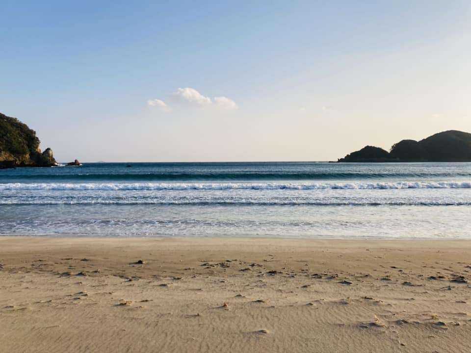 夏は大勢の人々で賑わいみせる同ビーチですがこの時期は人影も疎ら。プライベート感満載です。