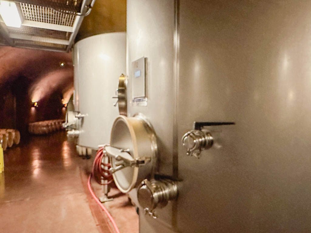 洞窟内には赤ワイン、白ワイン用のタンクが所狭しと並んでいます。訪問した11月中旬は、醸造の最終段階だという事でした。