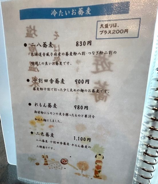 私がいただいたのは、北海道産の蕎麦粉を使った二八蕎麦の大盛りです。