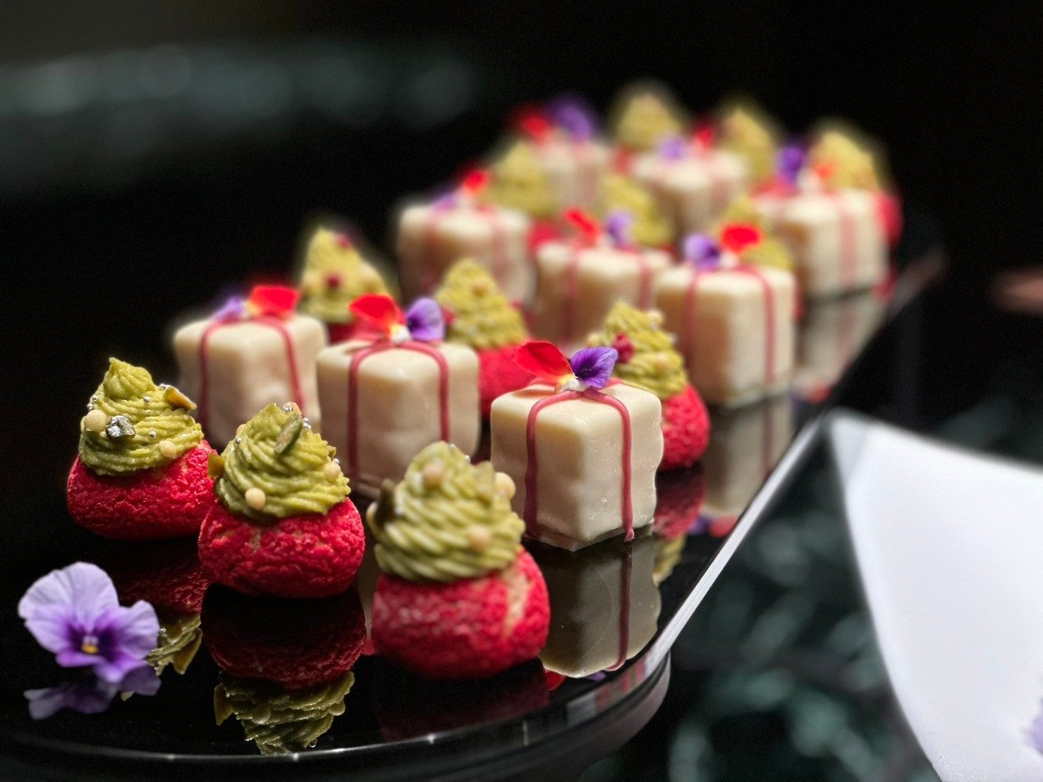 クリスマスは華やかですね。サンタさんに見立てたいちごがのっているショートケーキやベリーのグラスデザート、雪だるまのマカロンなど、見ているだけで、可愛くてワクワクします。高級食材が使われており、甘さ控え目で美味しくいくつでも食べれそうです。