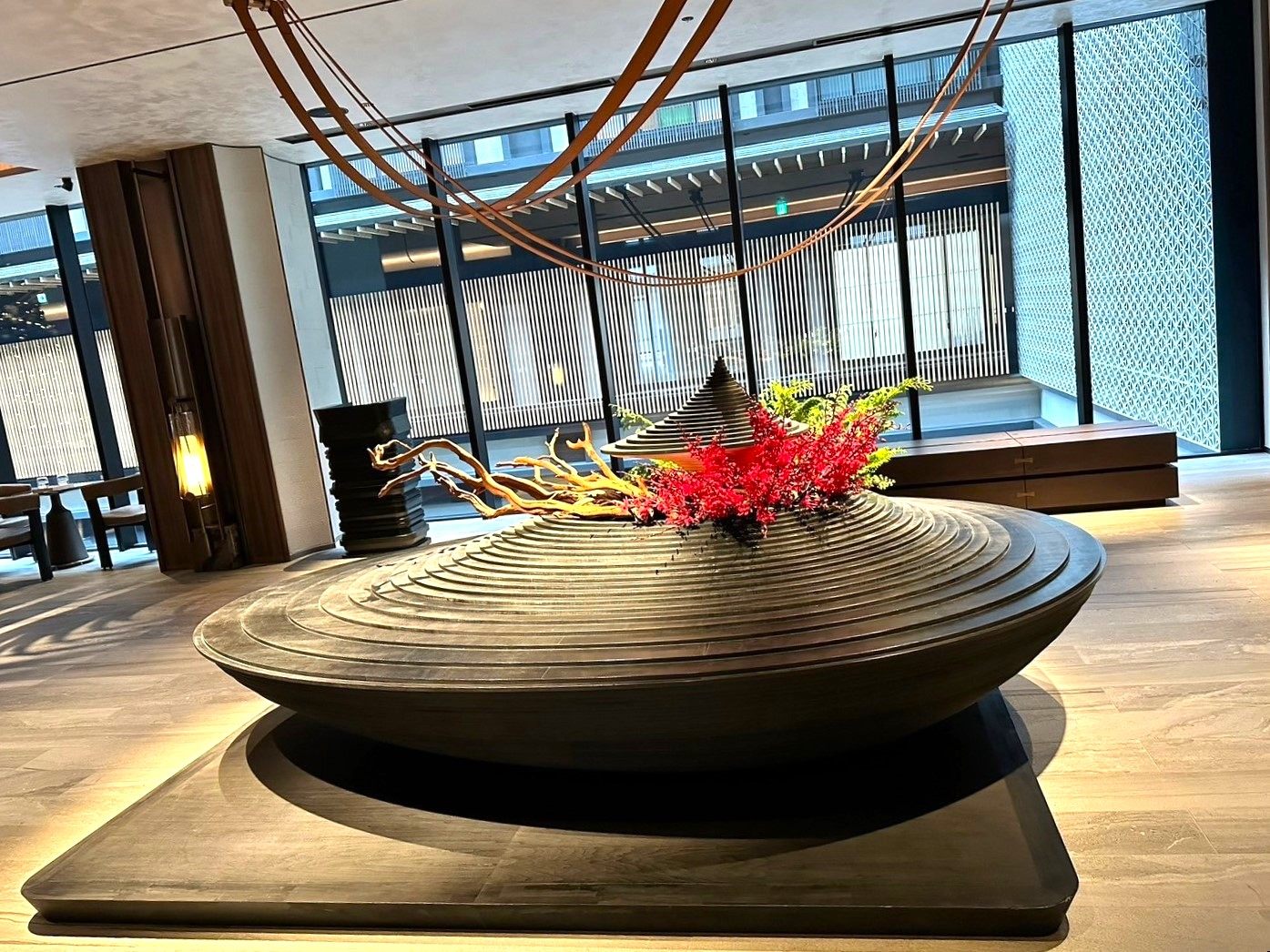 デュシタニ京都に一歩足を踏み入れると、心地よい香りが漂ってきます。タイの花でしょうか。個人的にタイは大好きで、タイと日本の文化の融合や高いホスピタリティも感じました。