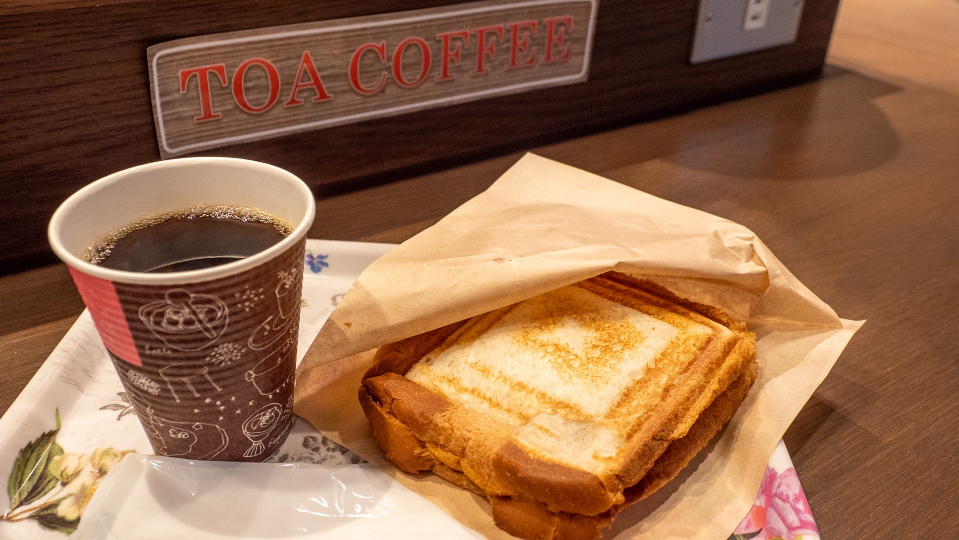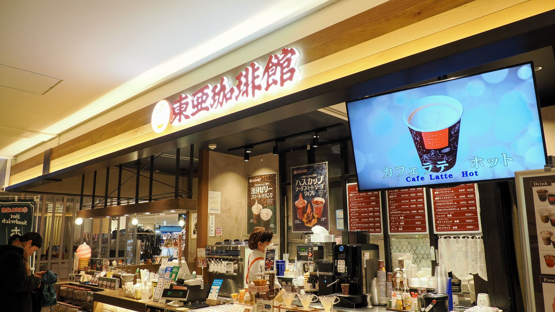 お土産屋さん以外の飲食店はまだオープンしているところがほとんどなく、お腹を空かせているなか、救世主のように現れた「東亜珈琲館」。