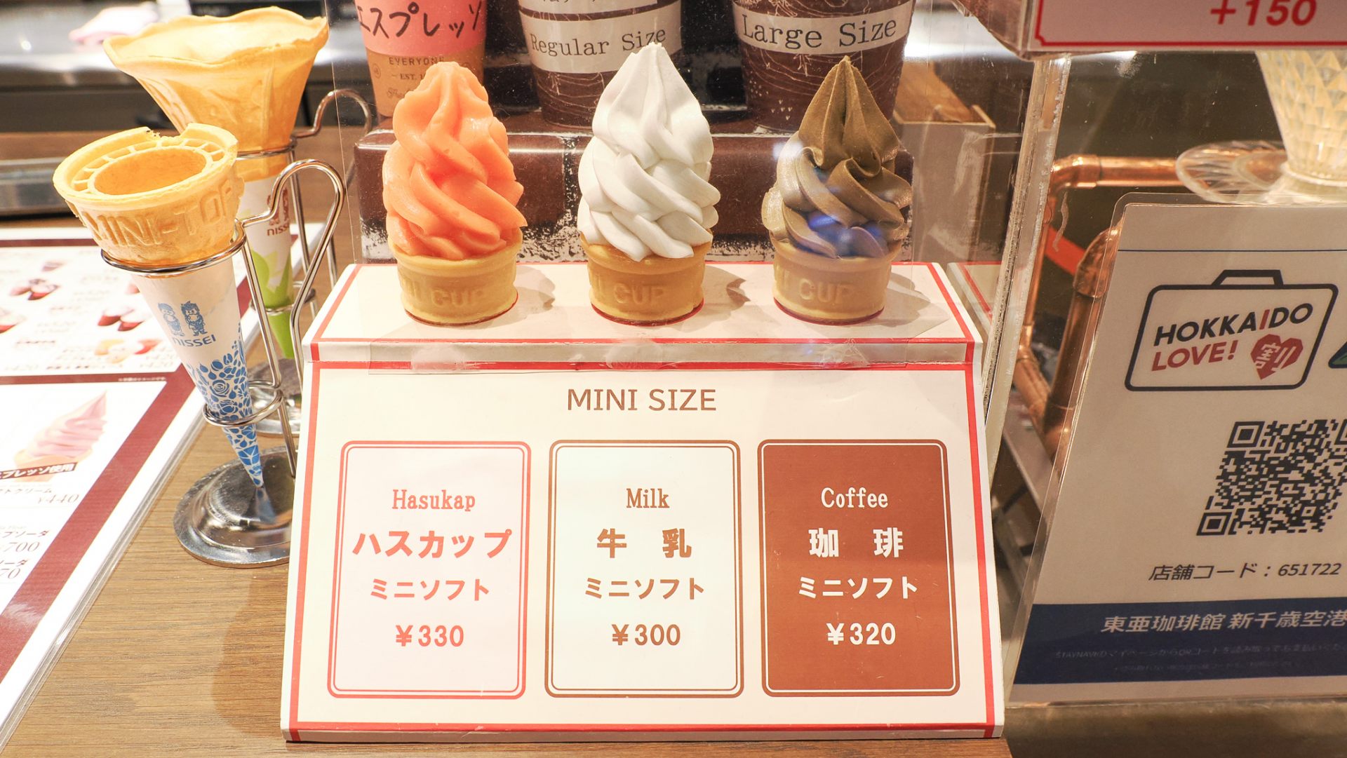 本州からお越しの方は、冬にソフトクリーム?! と思うかもしれませんが、暖かい空港ターミナルで、特にとても乾燥する冬にこそ、のどをおいしく潤してくれる東亜珈琲館のソフトクリームはおすすめです。