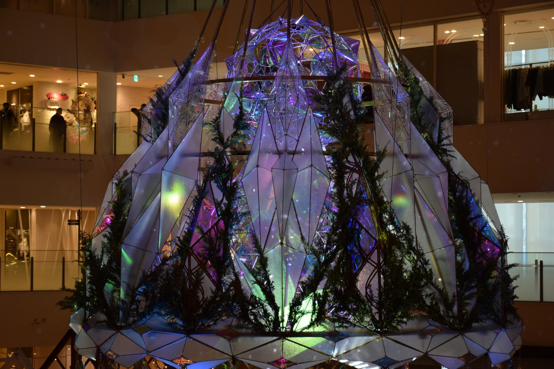 9階の祝祭広場では毎年約8mのミラーボールツリーが飾られているのですが、毎年少しづつ違っているんです。