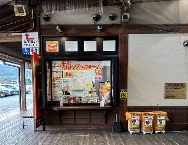 福岡県の南東部に位置し大分県との県境にあるこの道の駅には、通路でみかんの箱売りや柿のソフトクリームを売る店まであり、さすがはくだものが名物の町です。