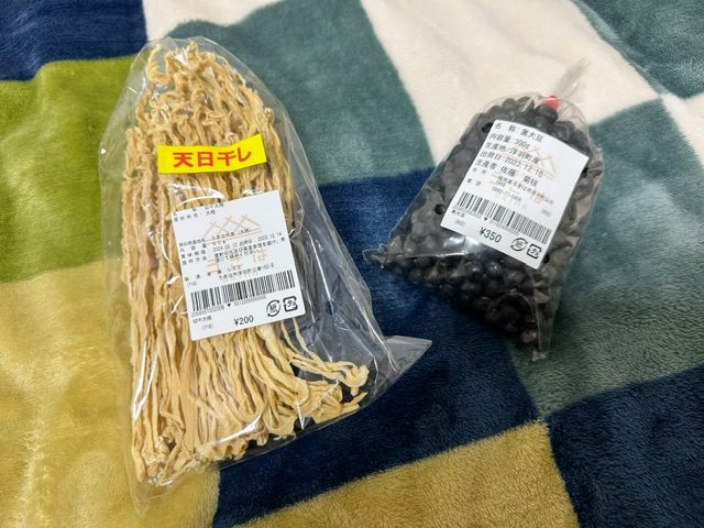 同様に日持ちするという理由で、天日干しの切り干し大根とお正月用に黒豆もお買い上げ。あとからこの豆は「黒大豆」なるものだと気づいたときはショックでしたが、どうやら黒豆と同じようなのでホッとしました。