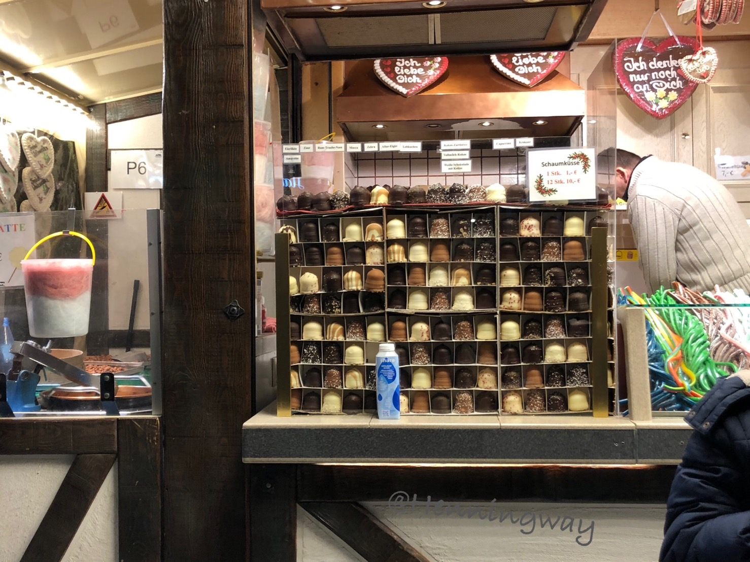 これは何だろう、と一見おもうかもしれません。日本語に訳すと、「泡のキス/チョコレートキス(Schaumküsse / Schokoküss)」などと呼ばれる※お菓子です。