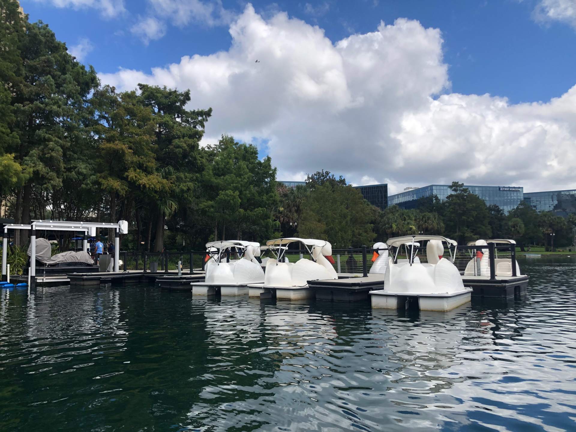オーランド中心部にある公園、Lake Eola は市民が散歩で訪れたり、イベントの会場になったりと常に賑やかな場所ですが、観光で来たら一度スワンボートに乗ってみるのもいいかもしれません。