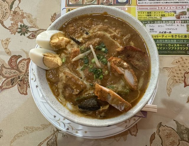 実を言うと、私のこの日の気分は「うどん」でしたが、探し求める間に同店の店先にうどんはうどんでもカレーうどん、しかもインドカレーのうどんを発見!
