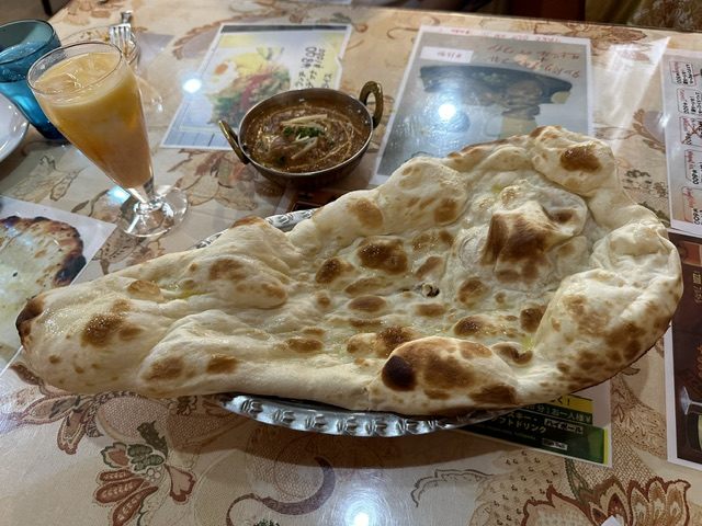 こんがり焼き目がついた表面にはバターもほどよく溶けており、生地に甘みがあるので辛いカレーとピッタリ。ナンが進みます。