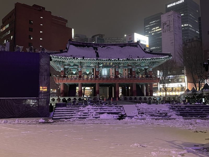 ソウルの中心部、光化門と鐘路の年末の風景、いかがでしたでしょうか。12月30日に大雪が降ったので、雪明りとともに幻想的な風景が広がっていました。ただ、足元が滑りやすいので、ソウル市内を旅行される方は、気を付けて風景を楽しんでみてください。