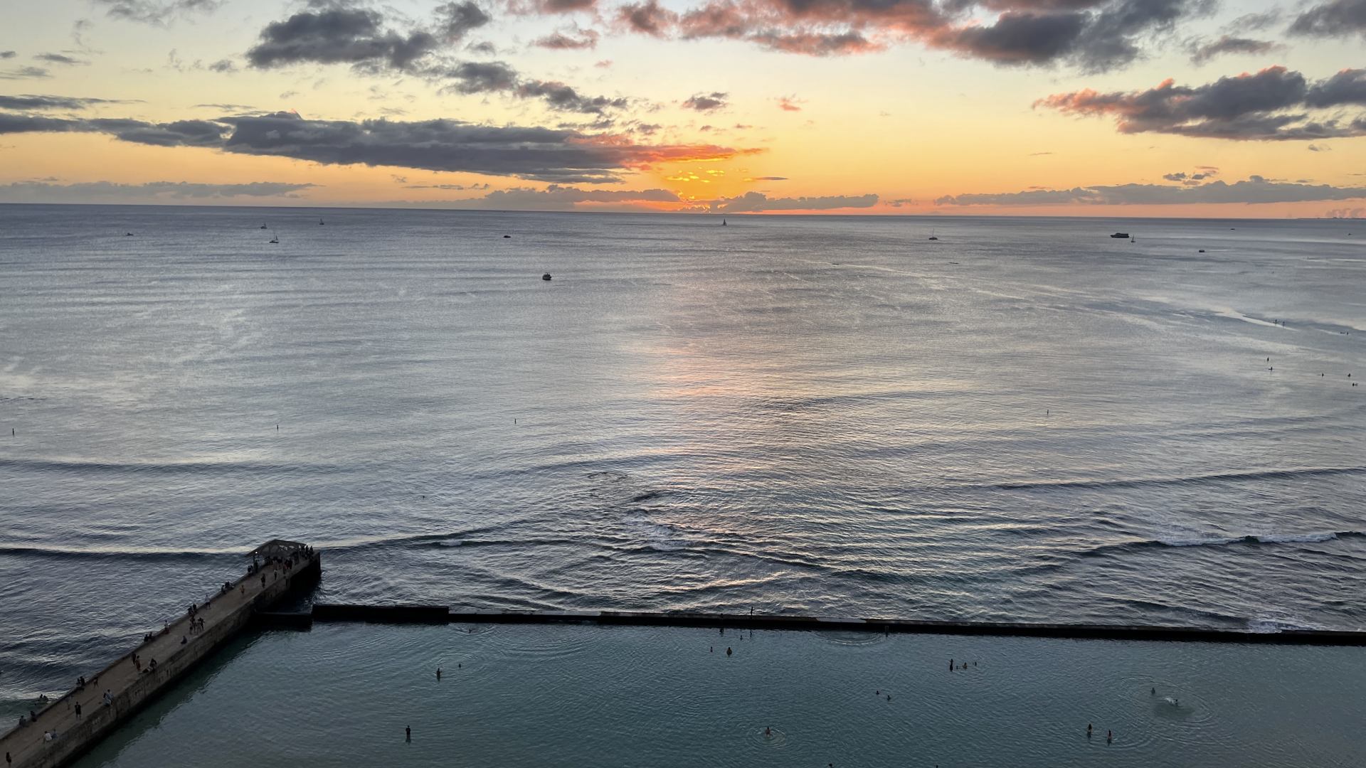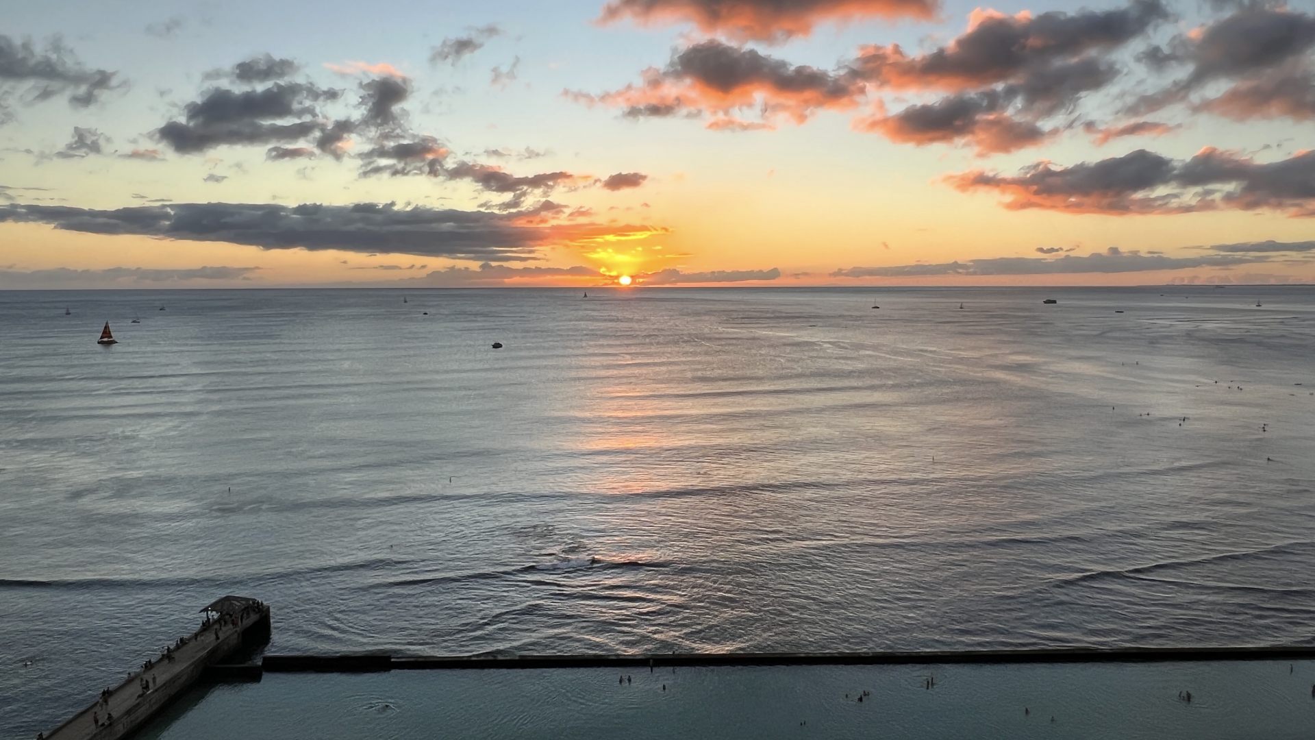 秋から冬にかけては、ワイキキビーチから水平線に沈む太陽を見ることができ、特に感動的なサンセットを楽しめます。一方、春から夏にかけては太陽が西側の山並みに沈んでいく様子を眺めることができます。どちらの季節も、ワイキキビーチで見るサンセットは圧倒的な美しさ。