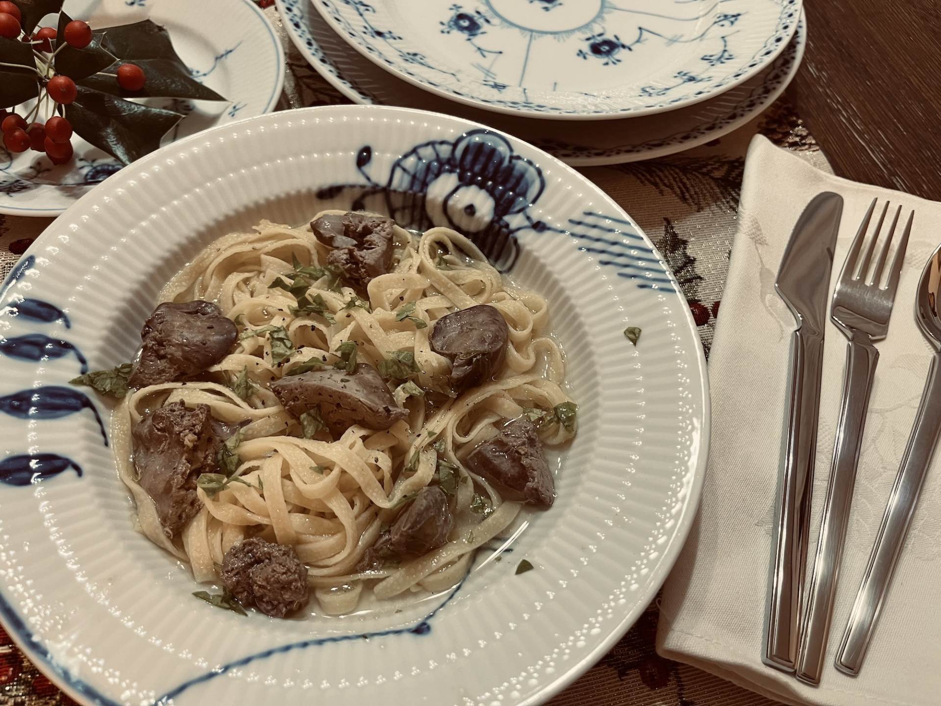 「Tagliatelle coi fegatini(タリアテッレ・コイ・フェガディニ)」は、チキンブロースに卵のパスタ「タリアッテレ」、そしてチキンレバーを添えます。クリスマスや大晦日など家族や友人と集まる時のプリモ(ファーストコース)として楽しみます。茹でたレバーがさっぱりしているので白ワイン「ソアーヴェ」などの飲みやすいワインが最適です。