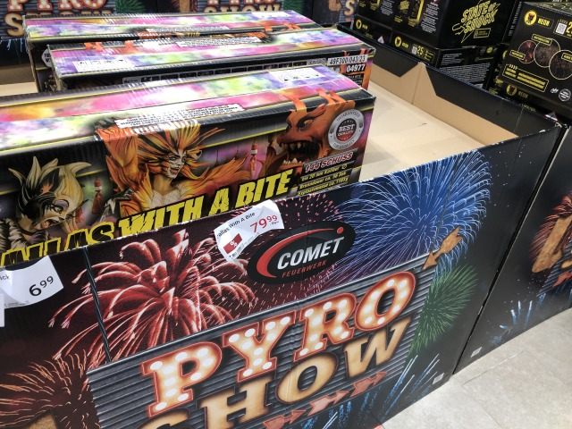 スーパーやドラッグストアなどでは年末に花火や爆竹が売られ始めます。